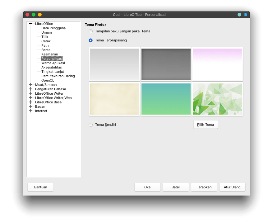 Mengubah Latar Menu/Persona LibreOffice 6.2